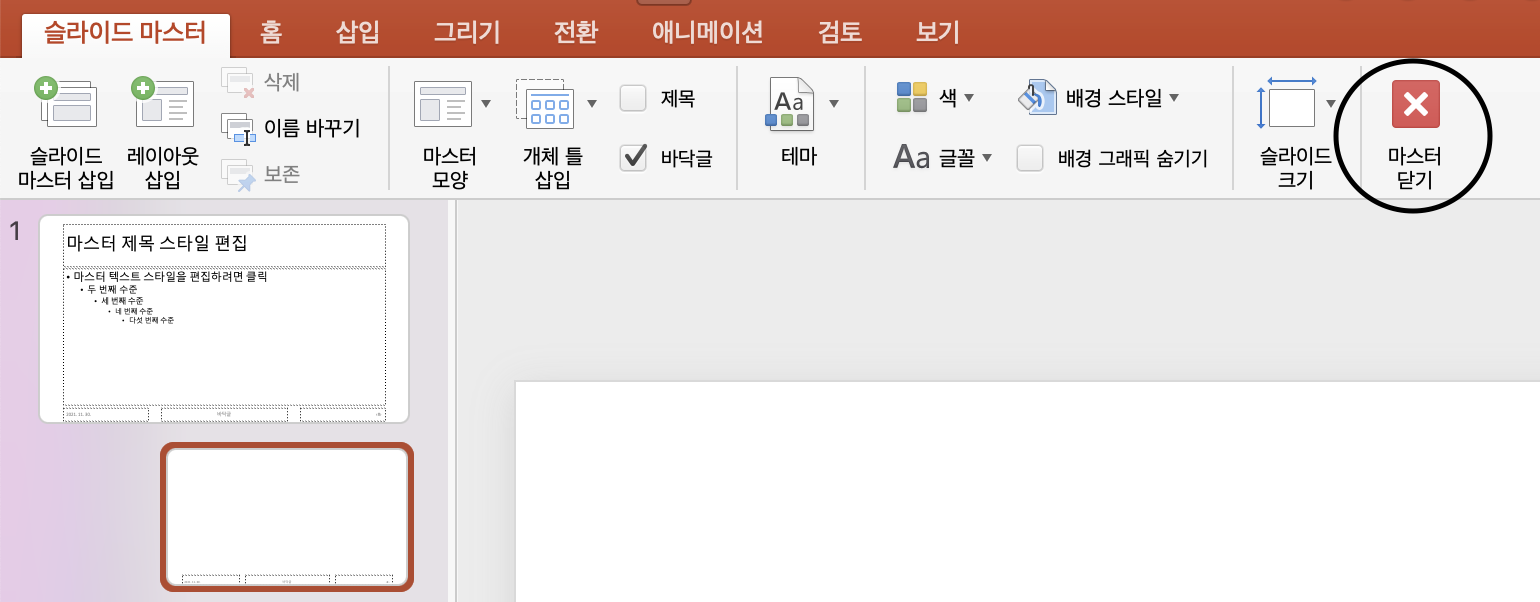 [마스터 닫기]를 눌러 원래 화면으로 빠져나옵니다.