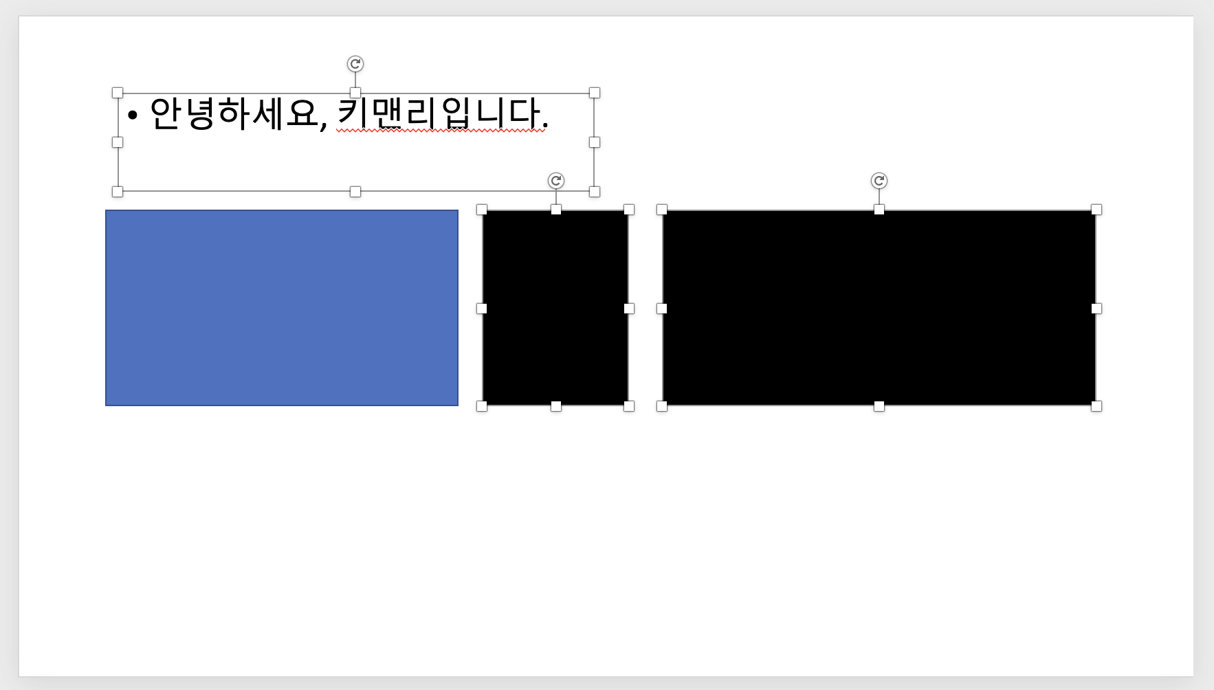 다른 도형과 텍스트 박스는 전부 선택이 되는데, 파란 네모만 선택이 되지 않습니다.