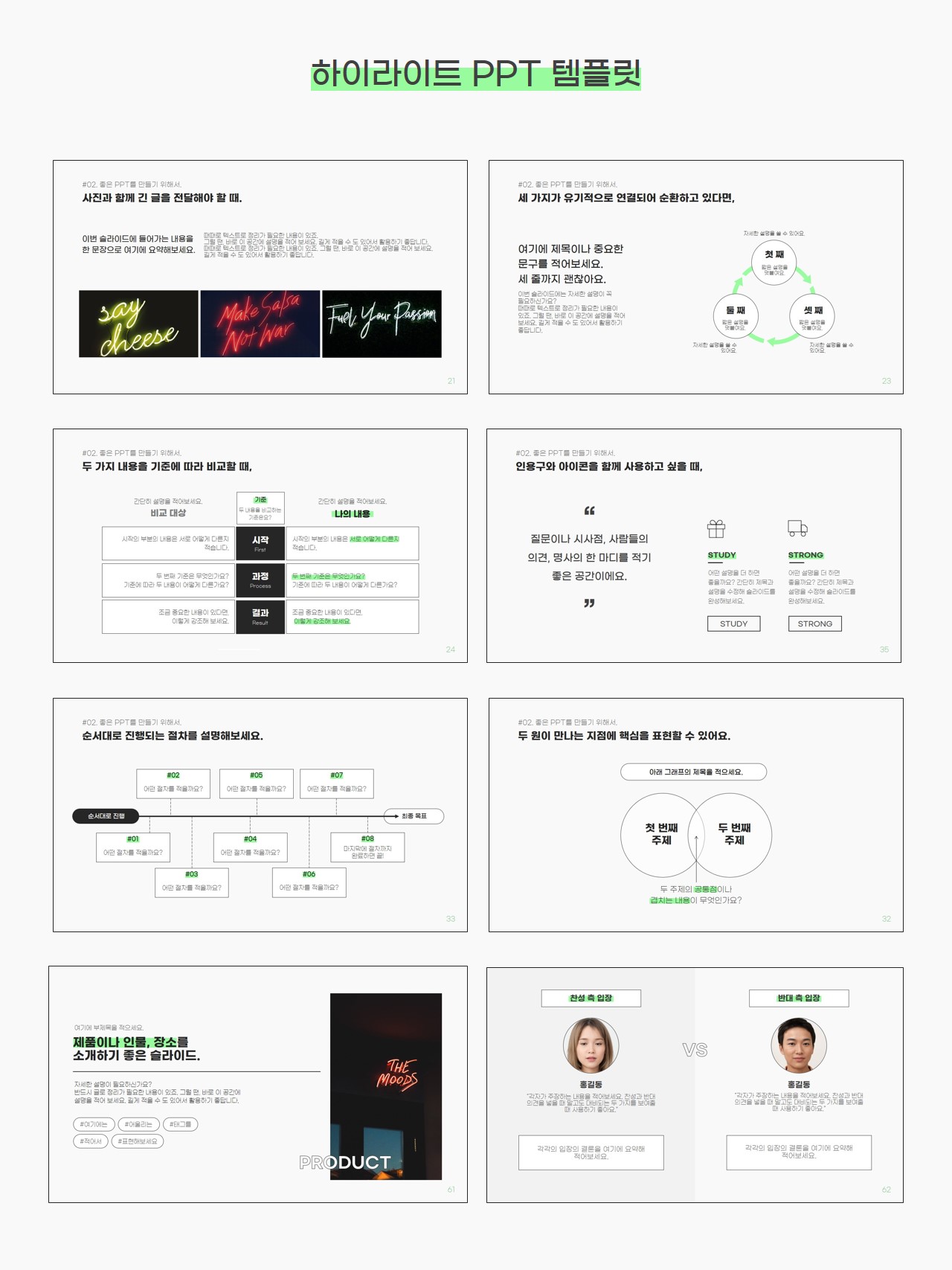 키맨리디자인에서는 쓸만한 템플릿이 있는지가 더 중요하다는 생각으로 "하이라이트 PPT템플릿 72장"을 만들었습니다.
